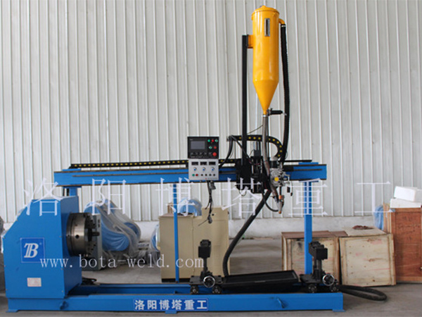焊接時(shí)主傳動系統(tǒng)將運(yùn)動傳遞到主軸,主軸驅(qū)動軋輥旋轉(zhuǎn),機(jī)頭沿軋輥軸向平移,從而在工作表面形成阿基米德螺旋線堆焊道,因焊道有定的寬度,每條焊道間有定的搭接量,在工作面形成具有足夠的硬性、高溫耐磨性、和熱疲勞性的堆焊層。